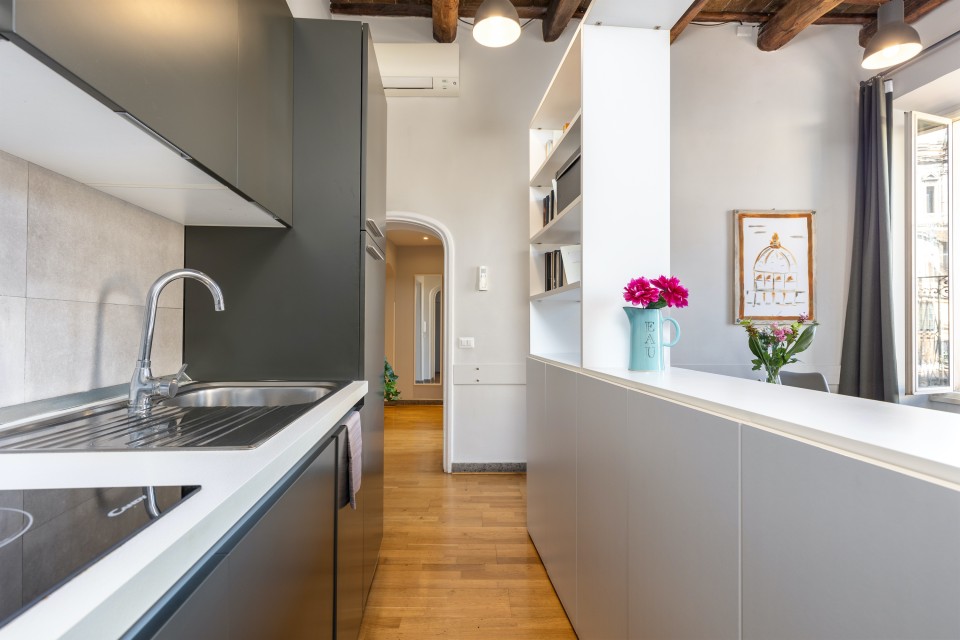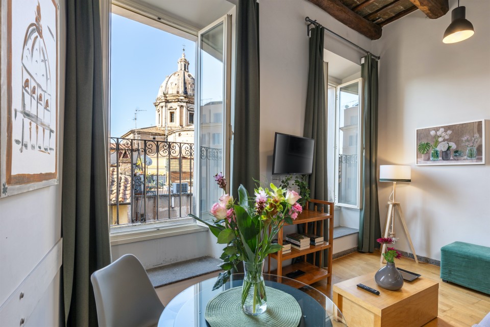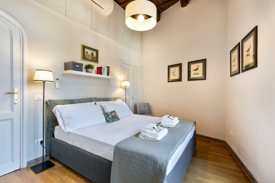 Situato al centro della città, in uno dei più antichi palazzi romani, questo appartamento, appena ristrutturato, è la location perfetta per una coppia che vuole godersi la vita nel cuore di Roma. Grazie alla sua posizione, sarà possibile raggiungere numerosi punti di interesse anche a piedi o comunque in pochi minuti, sfruttando la grande presenza di trasporti pubblici e taxi nella zona. L'appartamento è consigliabile ad un massimo di 2 persone, come detto precedentemente, visto la presenza di un'unica camera da letto matrimoniale. Questo tuttavia, non significa che l'appartamento manchi di spazio, in quanto è costituito anche da un bellissimo e luminoso salone, una cucina ben equipaggiata e un bagno con doccia. Oltre ai servizi essenziali, l'appartamento è inoltre dotato di wi-fi gratuito in tutte le stanze, aria condizionata e riscaldamento.