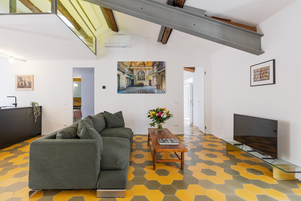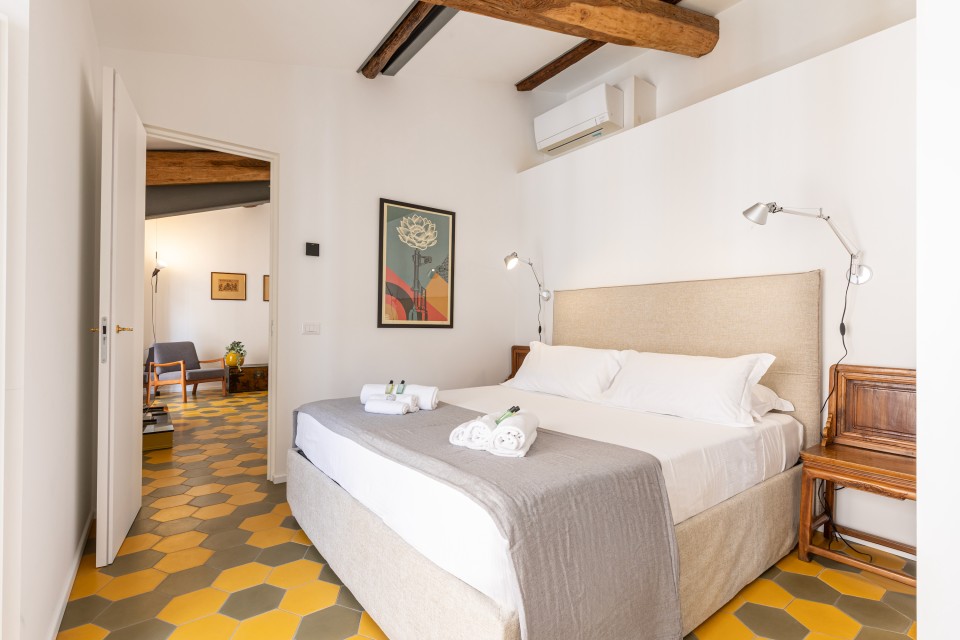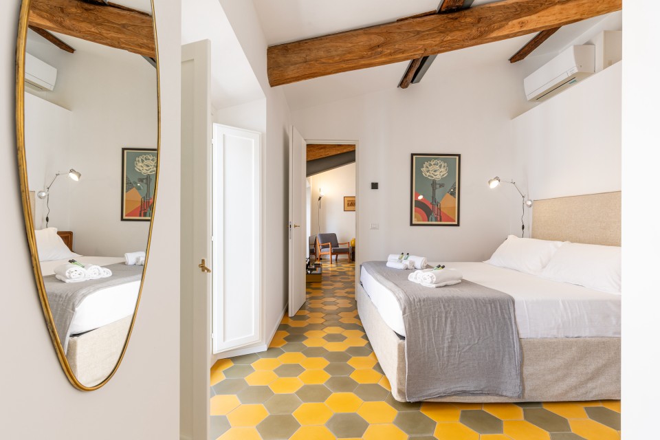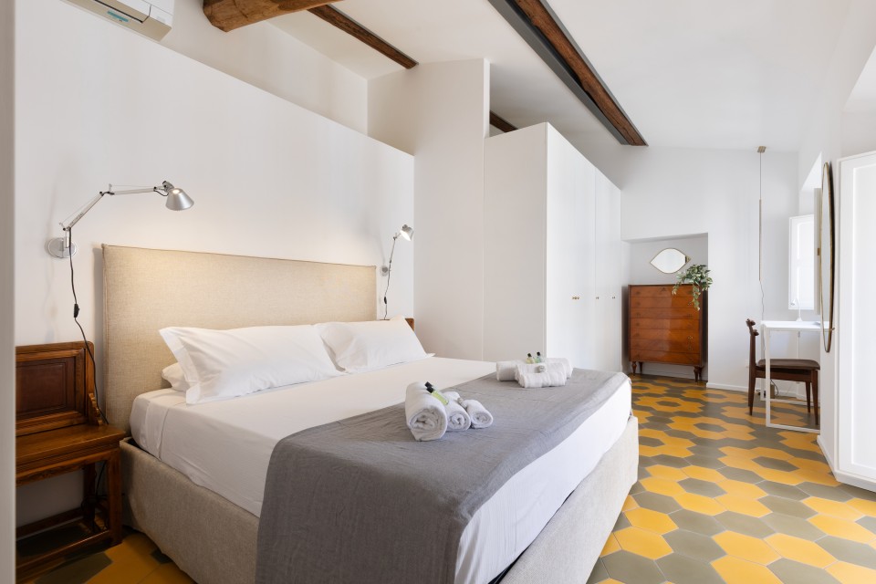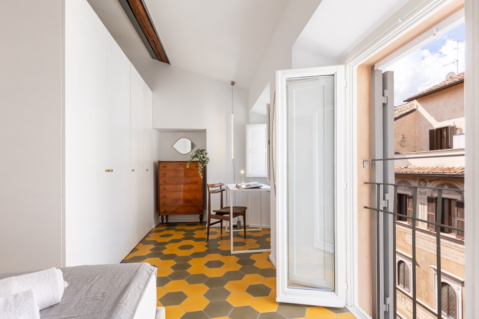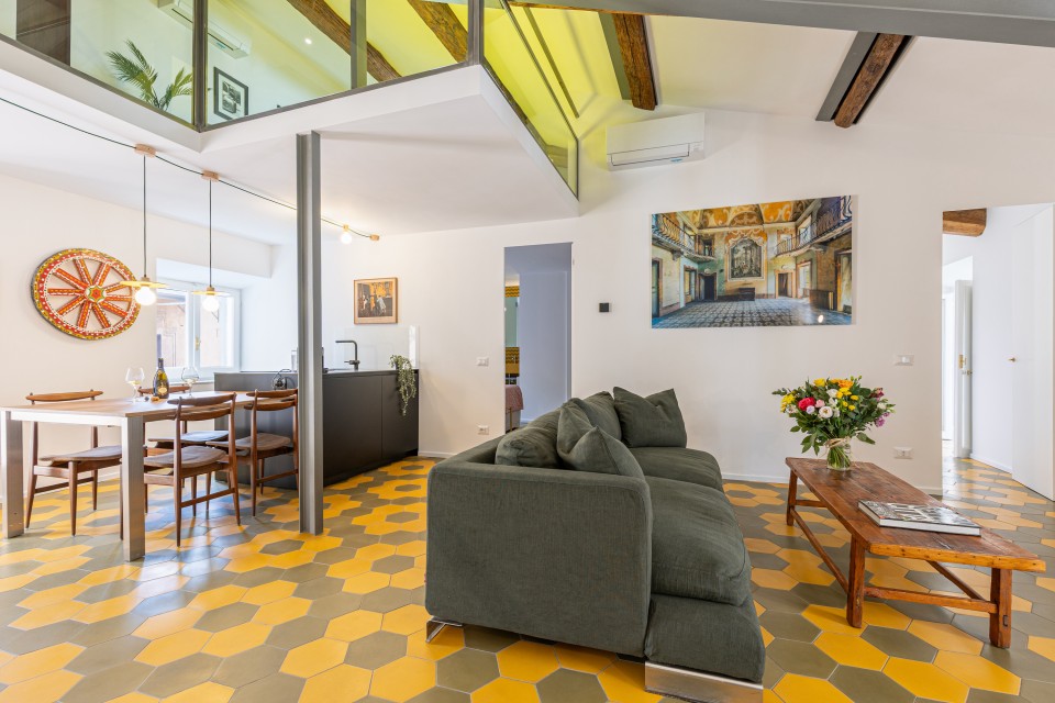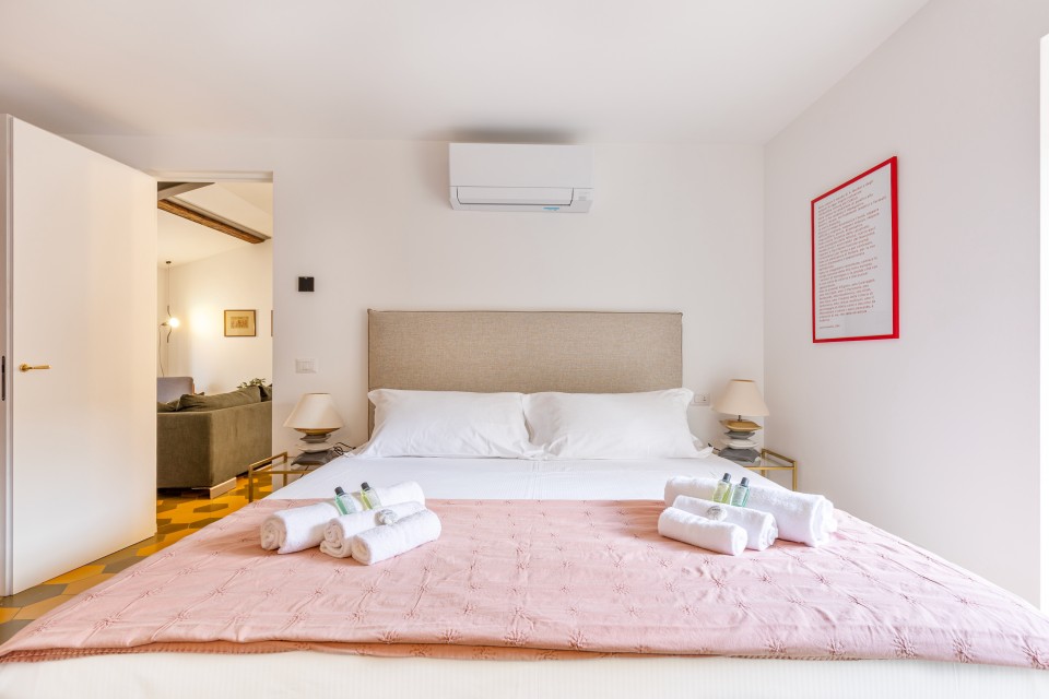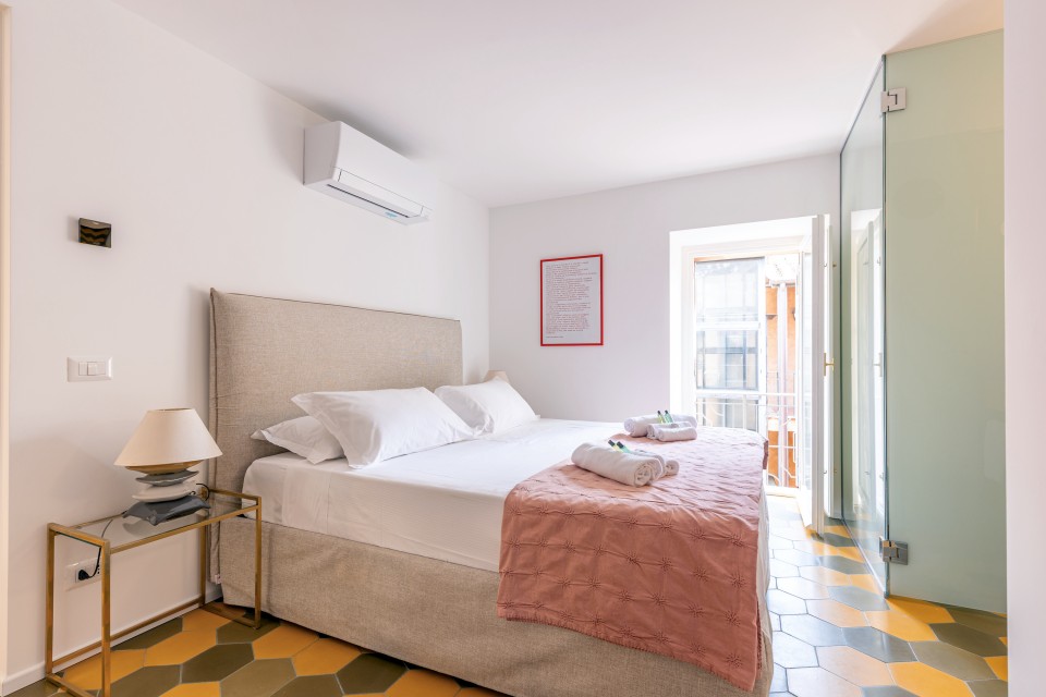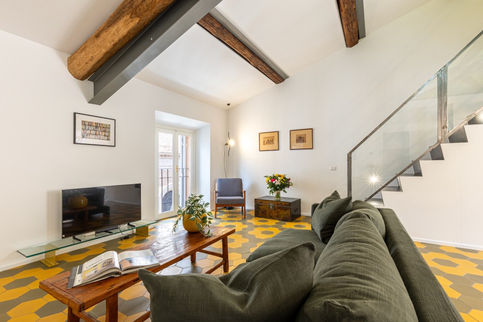 A stunning designer apartment in the vibrant heart of Piazza Navona, ideal for those wishing to experience the true Roman atmosphere. The Luxury Loft in Navona features two elegant double bedrooms with en-suite bathrooms, beautiful exposed beams and bright, carefully curated interiors. Fast Wi-Fi, heating and air conditioning are included to ensure total comfort throughout the year. Located on the third floor with an elevator, it combines historic charm with modern convenience. Just steps away from traditional restaurants, cozy cafés, artisan boutiques and Rome’s most iconic landmarks, it is the perfect choice for four guests seeking style, relaxation and an authentic Roman experience.